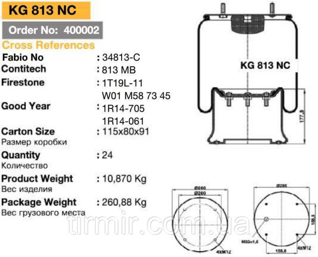Пневмоподушка со стаканом металлическим 813MB, Пневморессора подвески 813MB стакан металлический Производитель: KRAFTIGER; Страна производитель: Турция