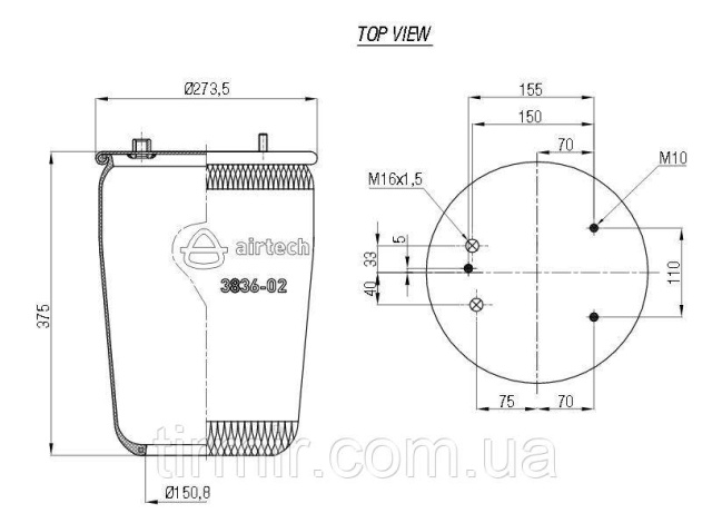 Пневмоподушка без стакана 836M2 DAF Производитель: AIRTECH; Страна производитель: Турция
