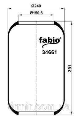 Чулок пневмоподушки 661N, Пневморессора подвески без стакана 661N Производитель: FABIO; Страна производитель: Турция Внутренний диаметр: 151 Внешний диаметр [мм]: 240 Длина [мм]: 391
